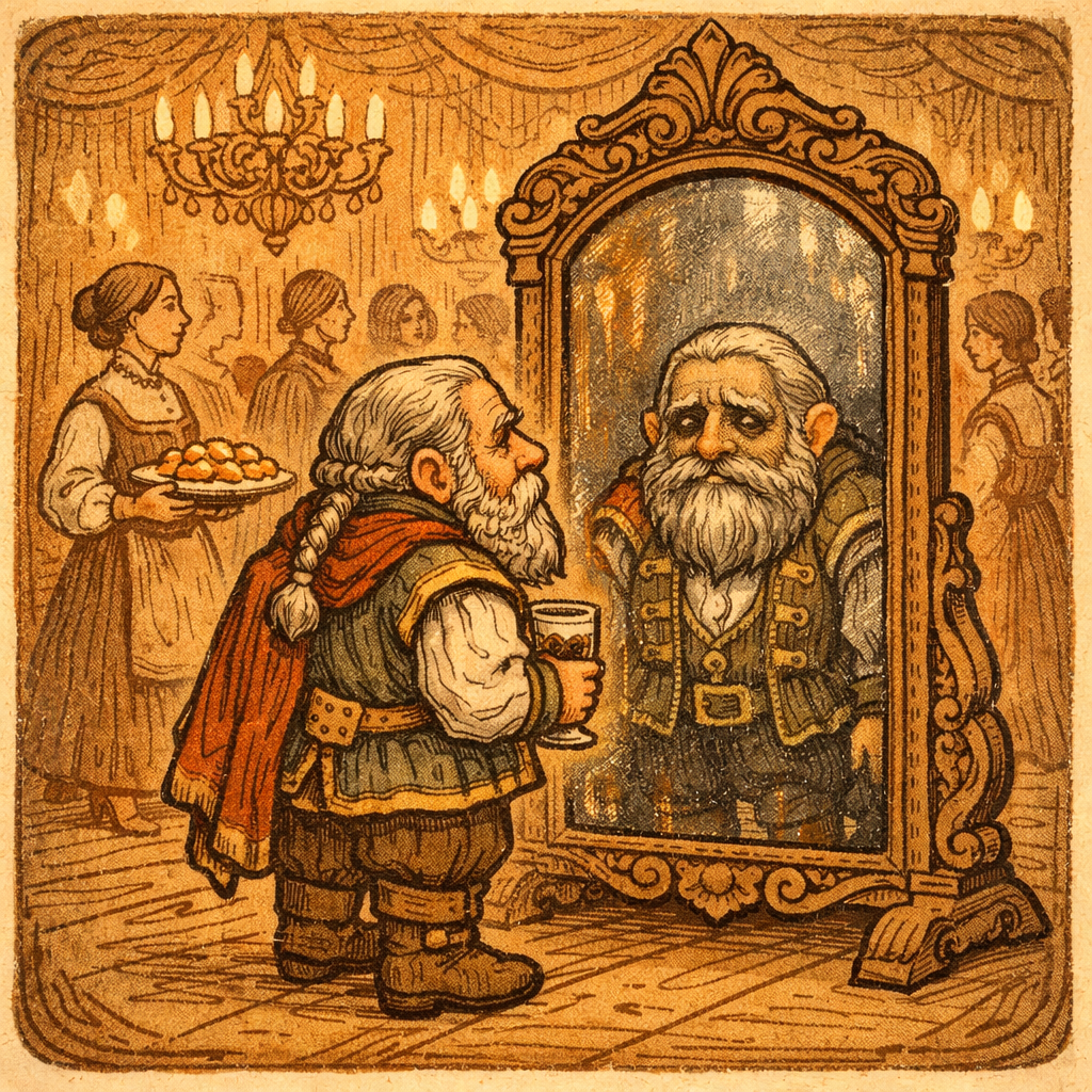 Thalmiir saw it first—or rather, he felt it. His reflection stood proud, dressed finely, yet behind the eyes lay ruin. Not merely failure, but failure made visible, etched into him like a brand. Generations of effort squandered. A name diminished. He could not look away from the certainty that everyone else could see it too.