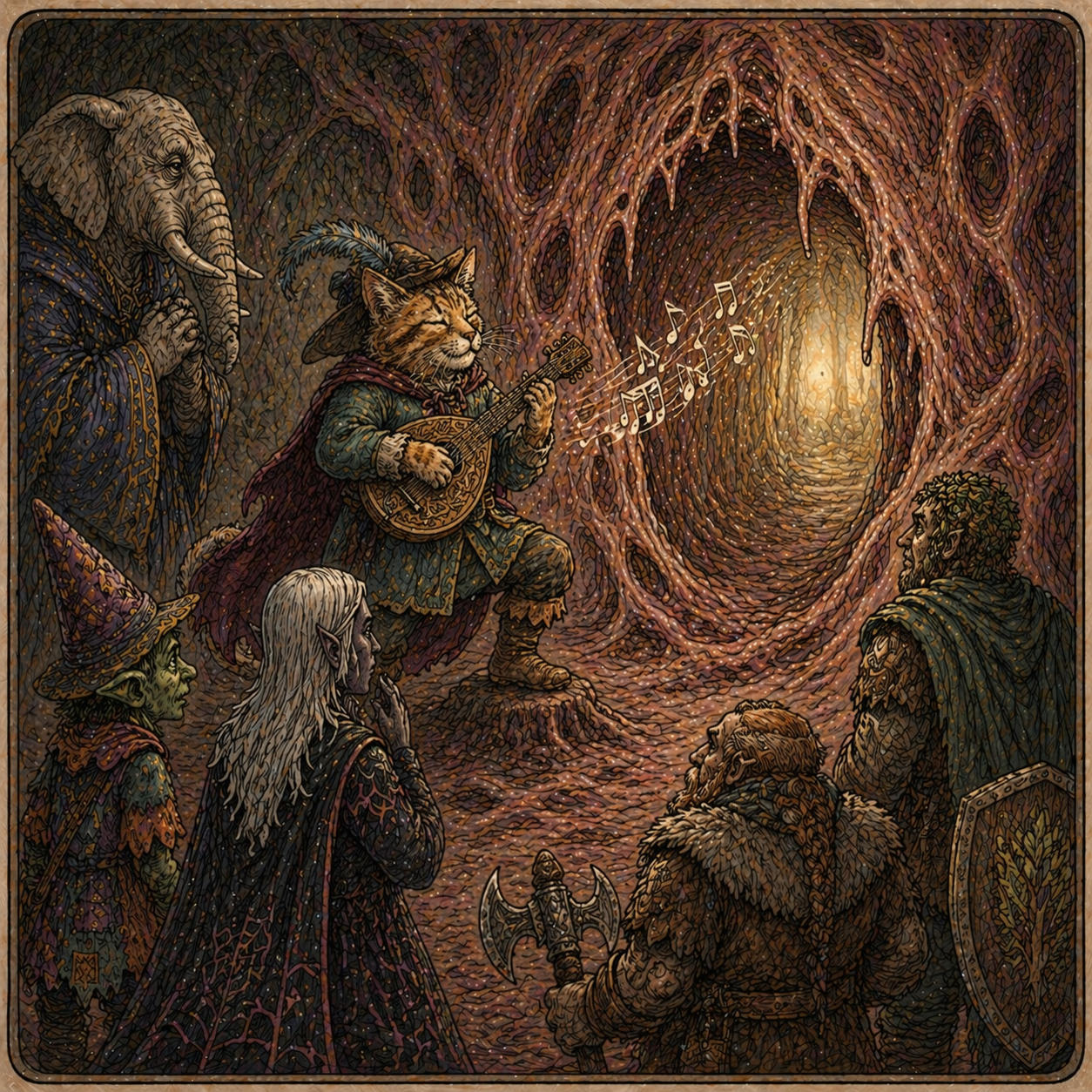 Bartholemeow answered by instinct, weaving a fragile harmony into the creature’s disjointed song. The work was clumsy at first. The melody slipped and faltered, refusing to settle into anything the ear could predict. But slowly, note by note, he found its rhythm, and when the door opened the truth showed itself plainly enough.